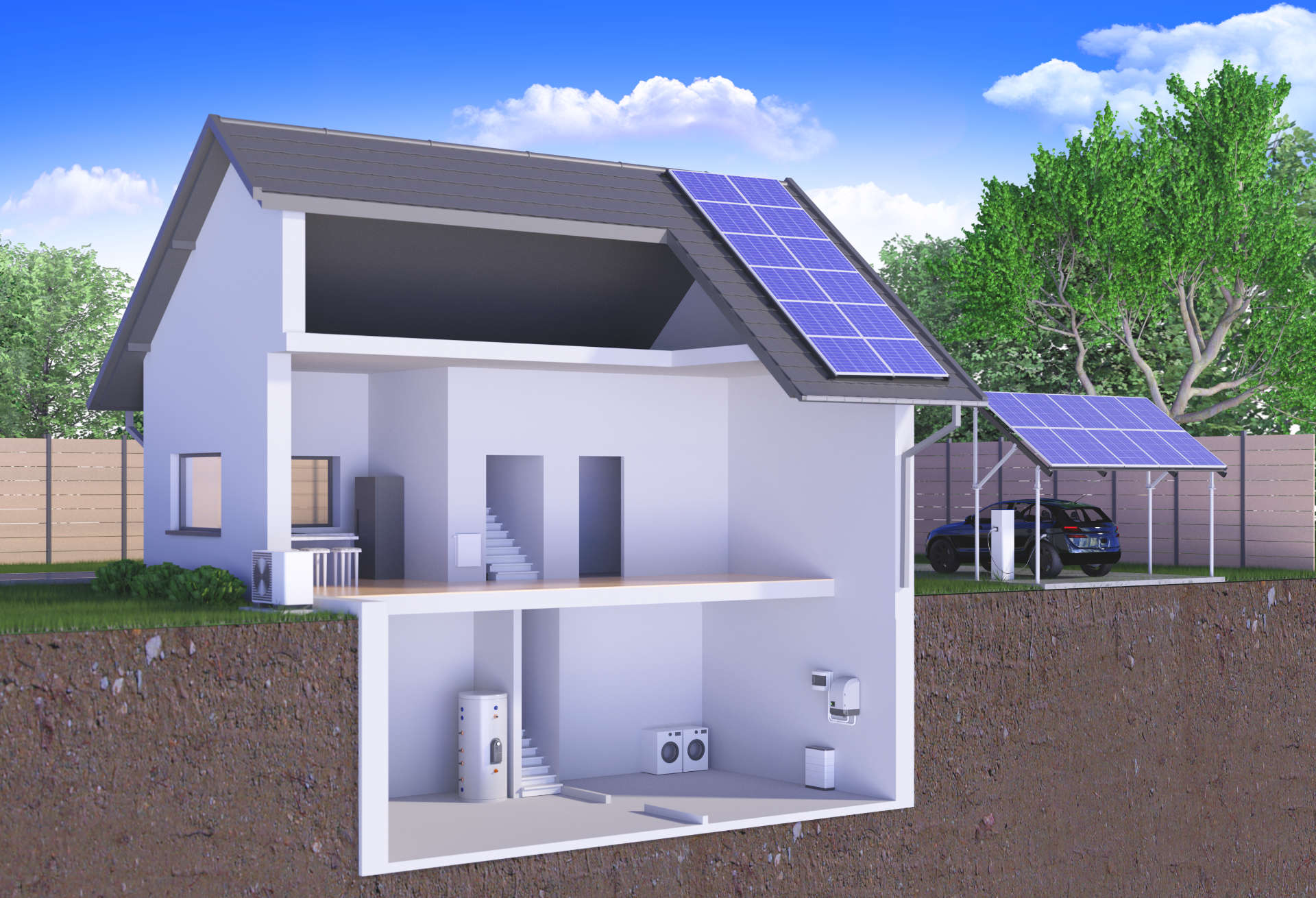 Überschüssiger Strom wird tagsüber in einem Speicher gesammelt.